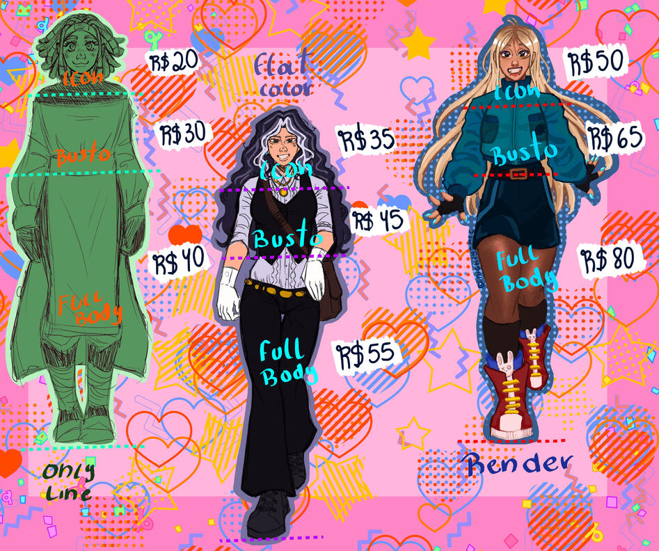 O pagamento deverá ser feito 50% antes do inicio do desenho e não há reembolso, então pense bem antes de pedir!